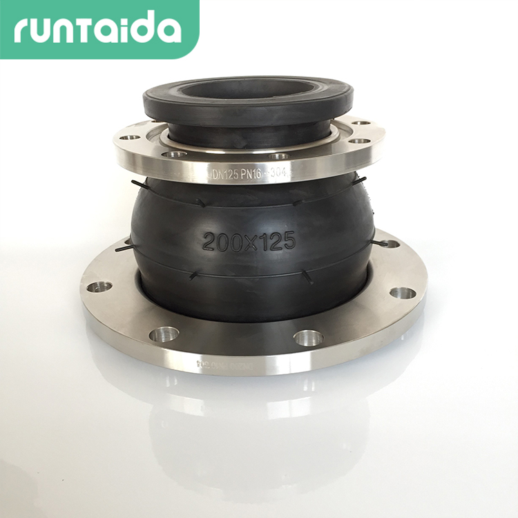 主要特點是可解決金屬管道連接時不同口徑的問題,同時有減震降噪的作用,可節約管道安裝零件,節約成本。它由內膠層、錦綸簾子布增強、外膠層復合的橡膠球體和松套金屬法蘭組成。根據介質不同所采用的橡膠材質也不同,有天然膠、丁苯膠、丁基膠、丁腈膠、三元乙丙膠、氯丁膠、硅橡膠、氟橡膠等等。異徑橡膠接頭分別具有耐熱、耐酸、堿、耐腐蝕、耐磨、耐油等功能。